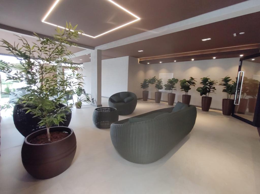 Apartamentos composos de 1, 2 e 3 dormitórios (1 suíte), banheiro social, sala de estar e jantar integradas a cozinha, área de serviço, churrasqueira e box de estacionamento. Piso porcelanato, esquadrias externas em alumínio, gesso, água, luz e gás individuais, espera para ar condicionado e água quente. Prédio com hall de entrada, frente mar, leste, sol da manhã, áreas sociais mobiliadas e decoradas, porteiro eletrônico digital com intercomunicador, sistema de monitoramento por câmeras, prédio 100% revestido externamente em pastilhas, sistema de chave eletrônica/tag no hall de entrada, gás central, elevador Atlas Schindler 3000 para 9 pessoas com resgate automático, apartamento para zelador, salão de festas/espaço gourmet, espaço kids, sala de jogos, academia e terraço.