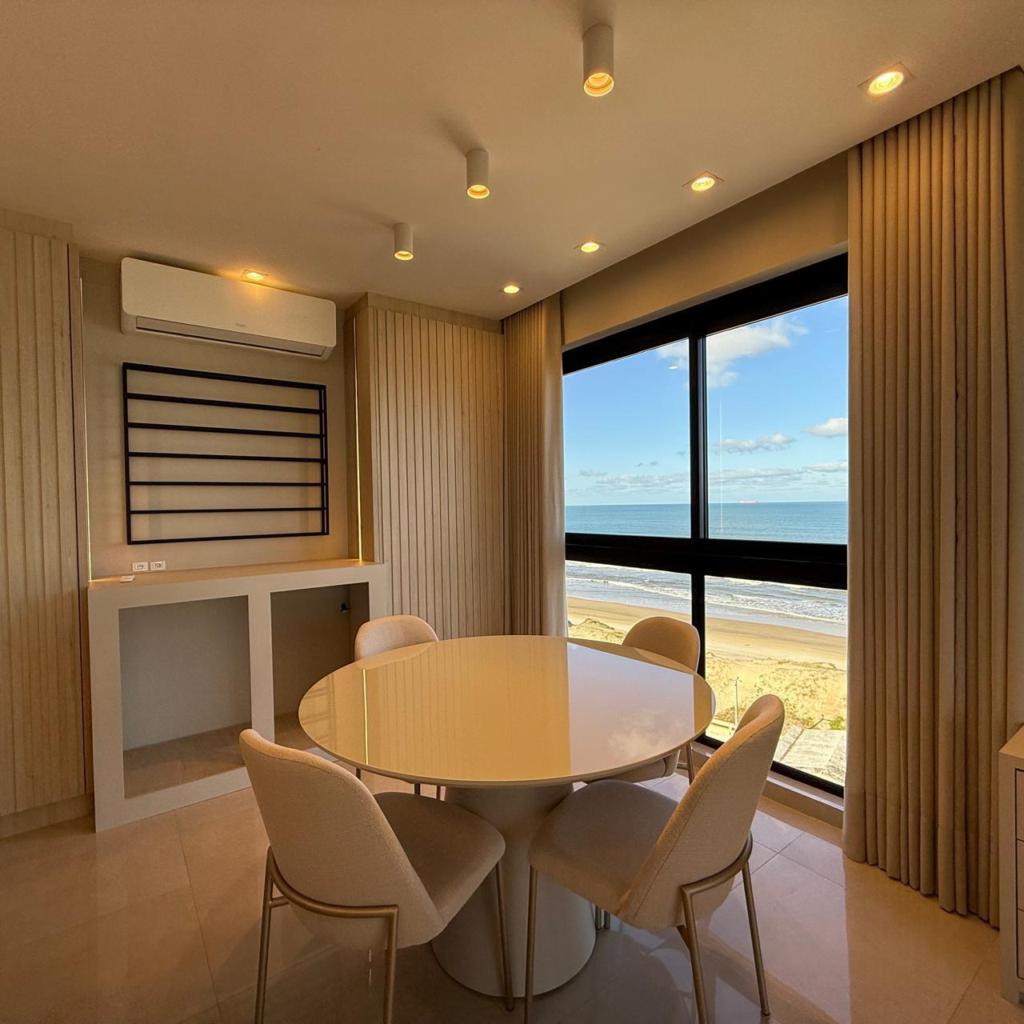 Apartamento mobiliado, composto de 2 dormitórios (1 suíte), banheiro social, sala de estar e jantar, cozinha, churrasqueira, área de serviço e box de estacionamento. Empreendimento com excelente padrão construtivo com 2 elevadores, salão de festas, gás central, medidores individuais, esquadrias em alumínio, zelador permanente, central portaria com comunicação interna entre apartamentos e espera para vídeo porteiro. VISTA PANORÂMICA E LOCALIZAÇÃO PRIVILEGIADA, JUNTO AO MAR.