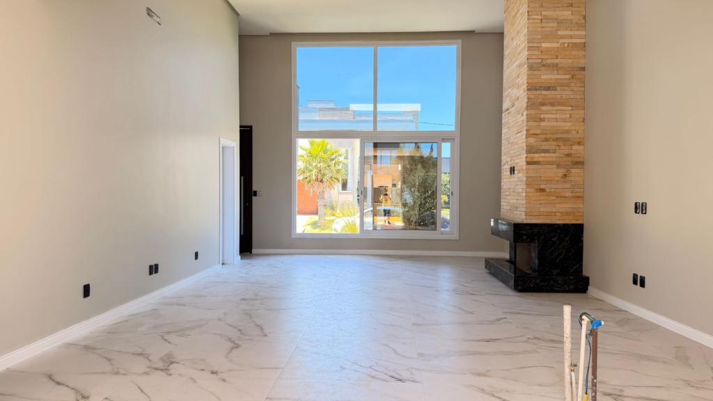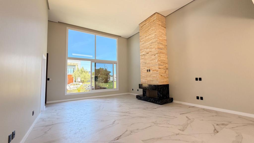 Residência composta de 3 suítes, lavabo, banheiro social externo, living em 2 ambientes com pé direito alto integrados a cozinha, churrasqueira, área de serviço e abrigo para 2 carros. Imóvel possui esquadrias externas automatizadas, porta de entrada com abertura de reconhecimento facial, água quente, calfinado em toda a casa, espera para split em todos os ambientes, espera para piscina ou spa e energia solar.
