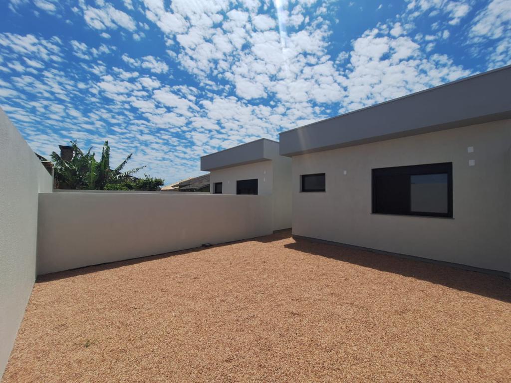 Residência composta de 2 suítes, lavabo, sala de estar e jantar e cozinha integrados, em conceito aberto, pé direito alto, churrasqueiira, área de serviço e estacionamento para 2 carros. Pátio fechado, aberturas de alumínio, piso em porcelanato e laje de concreto.