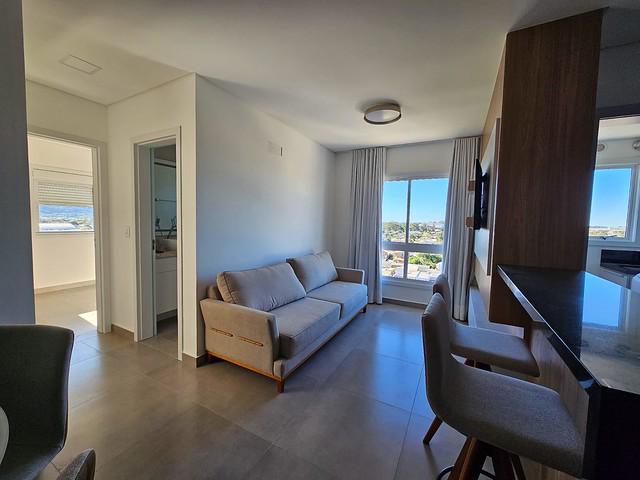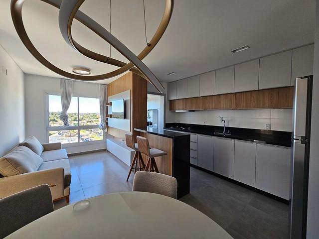 Apartamento mobiliado e decorado, composto de 2 dormitórios, banheiro social, salas de estar e jantar integradas, cozinha, área de serviço, espera para ar split.