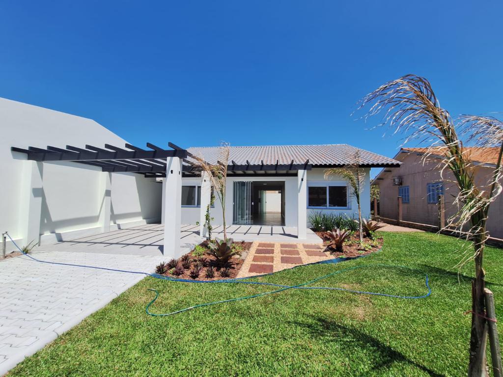 Residência composta de 3 dormitórios (1 suíte), salas de estar e jantar integradas à cozinha, em conceito aberto, banheiro social, área de serviço, pergolado de madeira e churrasqueira, piso porcelanato, esquadrias de alumínio anodizado, persianas de nylon nos dormitórios, pátio na lateral, fundos e frontal que recebe um lindo gramado e jardinagem, poucos metros do mar, posição solar leste.