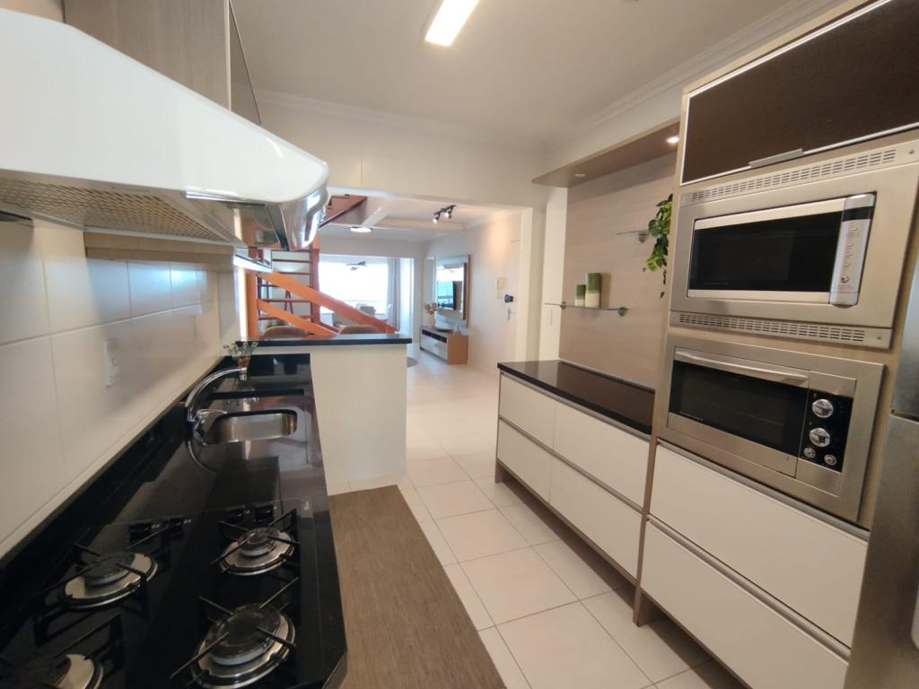 Cobertura duplex, mobiliada e decorada, composta de 3 dormitórios ( 1 suíte de frente para o mar ), 2 banheiros, salas de estar e jantar integradas, cozinha, área de serviço, espaço goumet, terraço, sacada, 2 boxes de estacionamento, depósito.