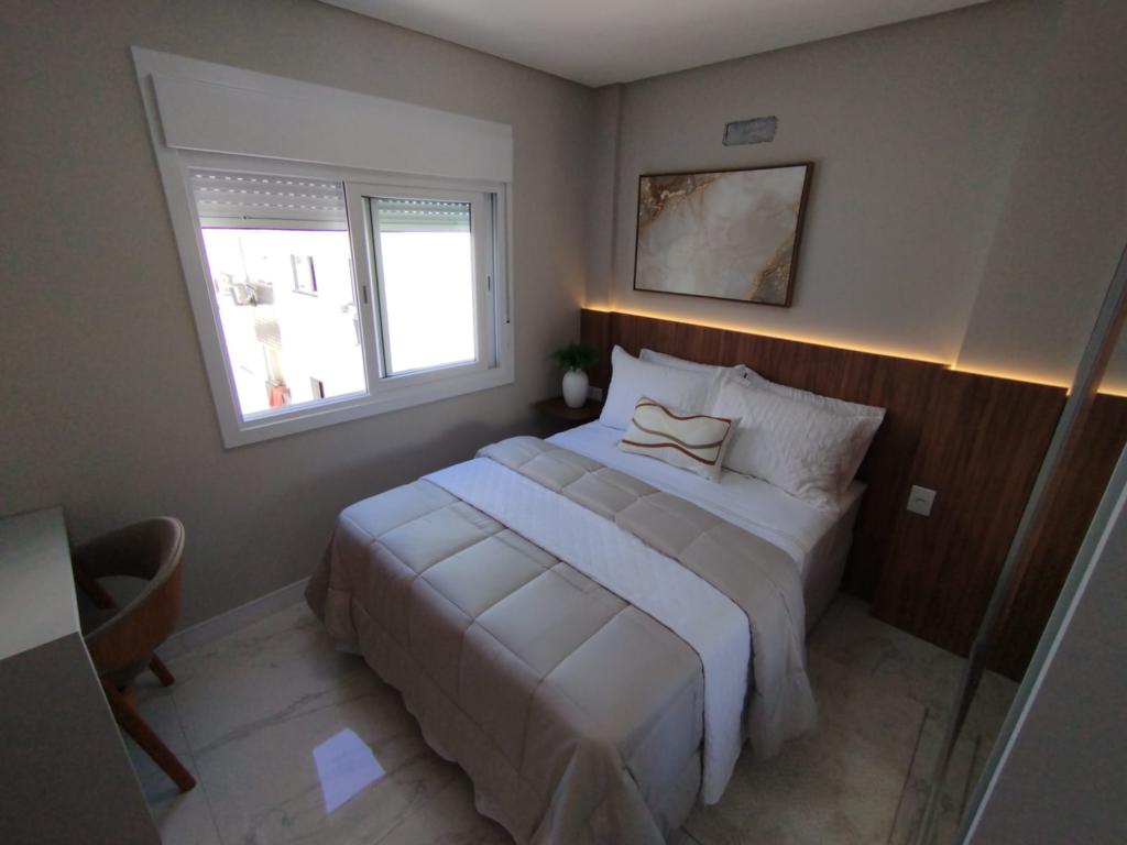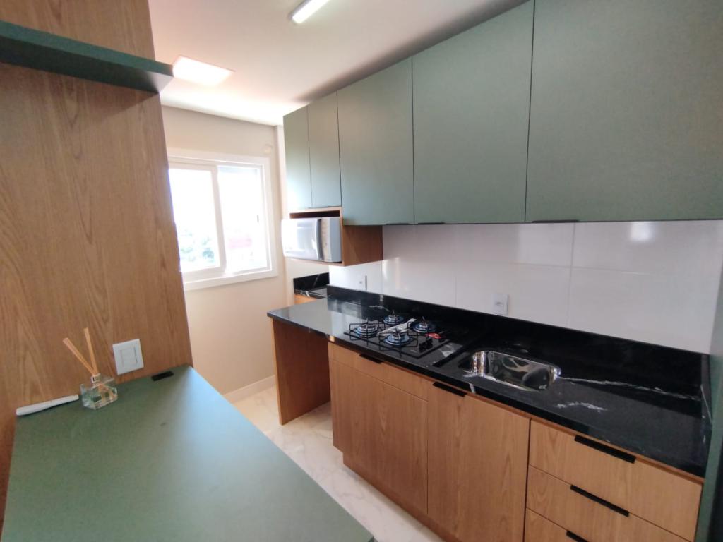 Apartamento mobiliado e decorado, composto de 1 dormitório, banheiro social, salas de estar e jantar integradas à cozinha e área de serviço, box de estacionamento.