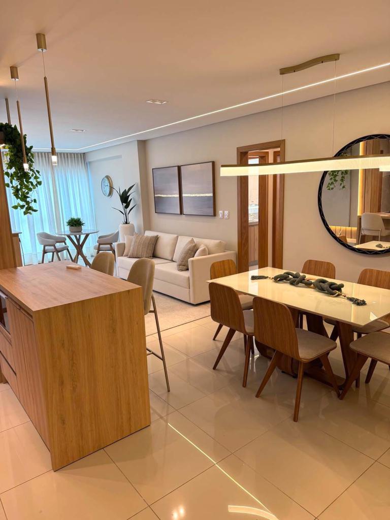 Apartamento mobiliado e decorado, composto de 2 dormitórios ( 1 suíte ), banheiro social, salas de estar e jantar integradas, cozinha, área de serviço, churrasqueira, box de estacionamento. Ar condicionado em todos ambientes.