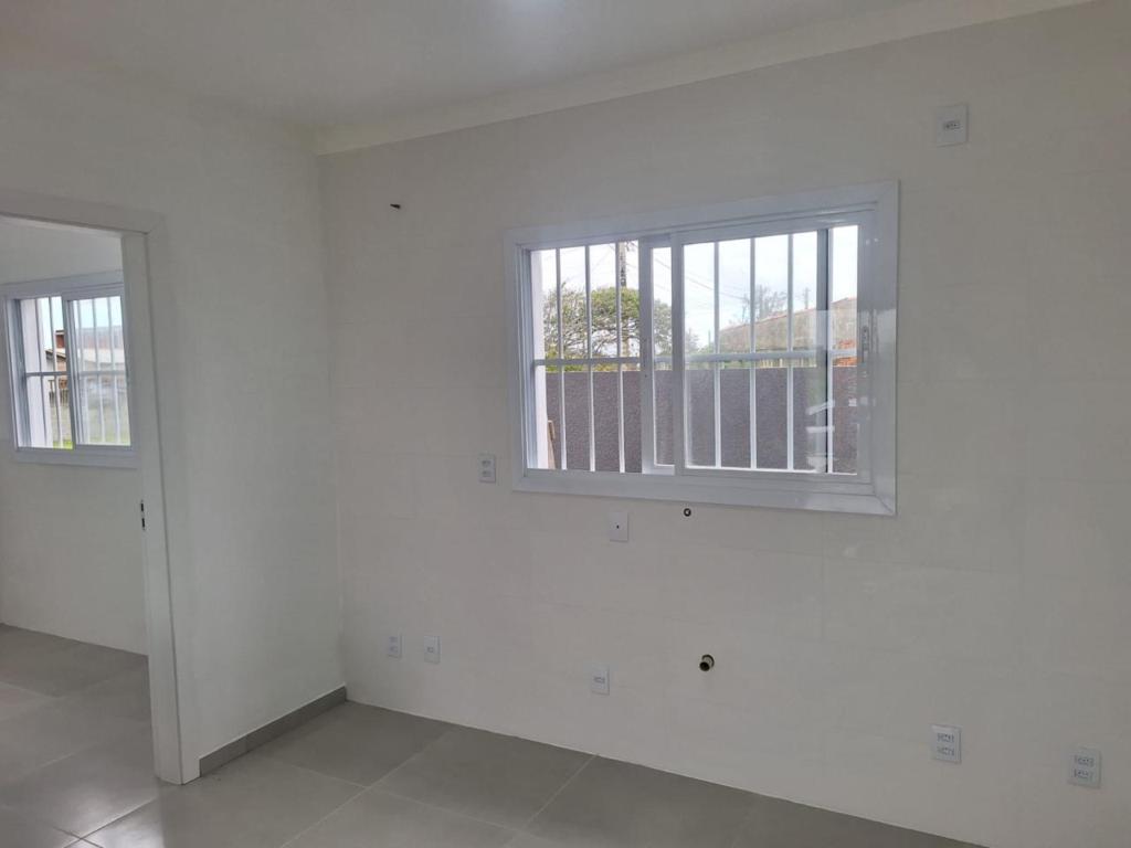 Residência nova, de esquina, nunca habitada, composta de 2 dormitórios, banheiro social, sala e cozinha integradas, ao estilo americano, churrasqueira, área de serviço e abrigo para carro.